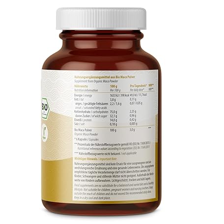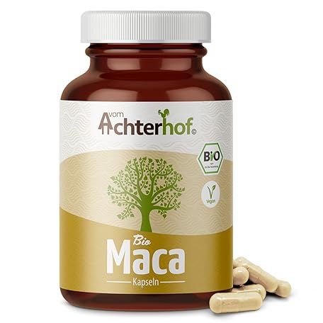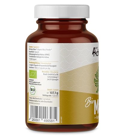 Maca Kapseln Bio 180 Stück | hochdosiert mit je 3000mg Maca-Pulver pro Tagesdosis | vegan | 100% reine Macawurzel aus Peru | vom Achterhof