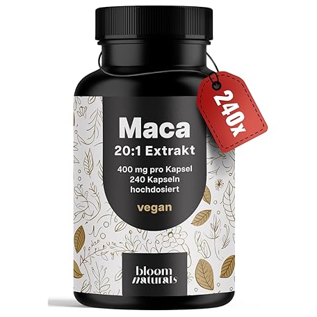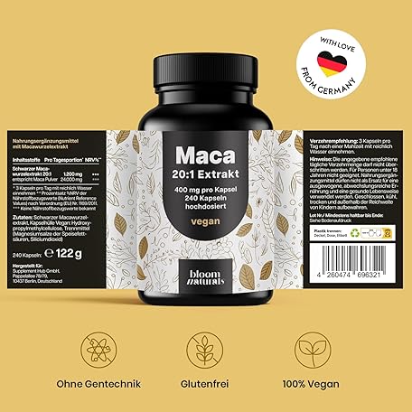 Sản phẩm Maca Kapseln Gold Hochdosiert 20:1 Extrakt - 8000mg pro Kapsel - 240 Kapseln - Vegan & Produziert in Deutschland Laborgeprüft - Verpackung kann variieren đang được bán với giá ưu đãi là $19.0314 tại nước Đức.