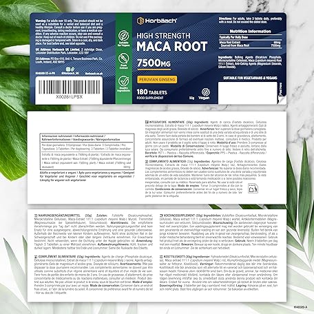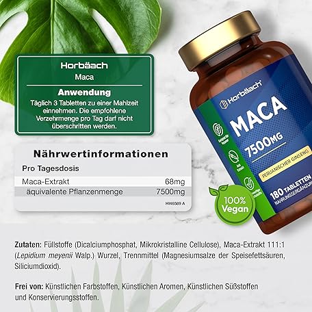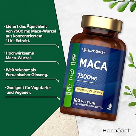 Sản phẩm Maca Root 7500mg | 180 vegane Tabletten (keine Kapseln) | Peruvian Maca Wurzel Hochdosiert | von Horbaach đang được bán với giá ưu đãi là $10.8891 tại nước Đức.