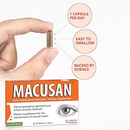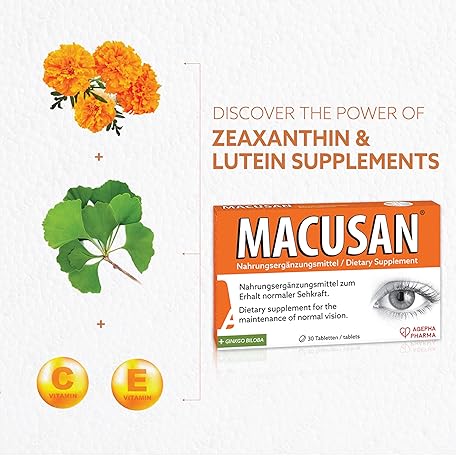 Sản phẩm Macusan® - To maintain normal vision - Ginkgo, Zeaxanthin and Lutein for your eye health - Support against age-related macular degeneration (AMD) (30 tablets) đang được bán với giá ưu đãi là $78.371 tại nước Đức.