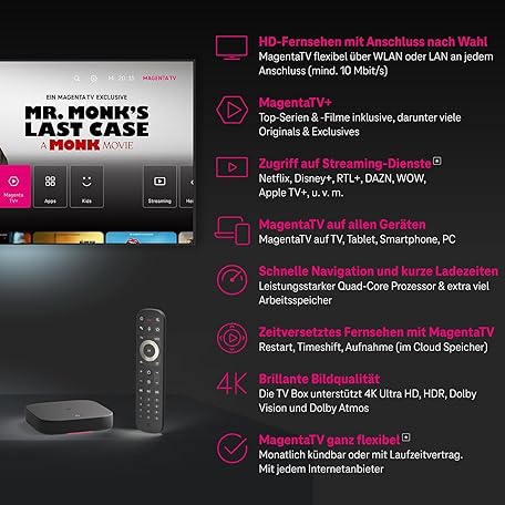 Thông tin sản phẩm MagentaTV One (2nd Generation) | Android TV Box with WiFi & LAN I MagentaTV with 150+ HD Stations, 4K UHD, HDR, Live & Time Offset | (Netflix, Disney+, RTL+, DAZN, Wow, Apple TV+) & Google Play Store