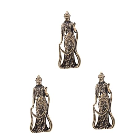 MAGICLULU 3St Messing-Buddha Bodhisattva-Statue Quan-Yin-Statue Bodhisattva-Figur Schloss Buddha-Kuan-Skulptur Buddha Statue Buddha Figuren altes Messinghandwerk Desktop-Dekoration Golden