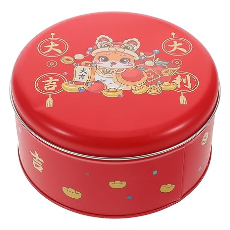 MAGICLULU Chinesische Neujahrs geschenkbox Blechdose mit Luftdichtem Deckel Kleine Runde Tee Gewürzdose im Jahr der Schlange Design Vielseitige Aufbewahrung für Snacks Schmuck Kaffee Rote