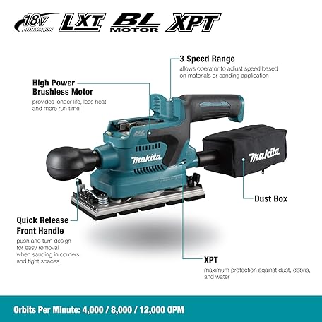 Thông tin sản phẩm Makita DBO380Z Cordless Orbital Sander 18 V (without Battery, No Charger), Petrol / Black