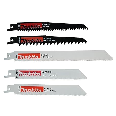 Makita P-83967 Reciprosägeblatt-Set 5-teilig, je 1x P-47086, P-04880, P-04927, P-04911, P-04999, für Holz, Metall, Gipskarton