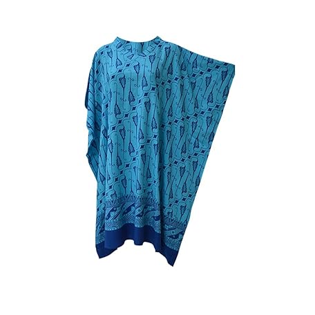 Malakka Poncho Batik Tunika Plus Hippie Buttersoft Kaftan Top Batik Strand Cover Up Damen T-Shirt Gr. One size, Blauer Batik