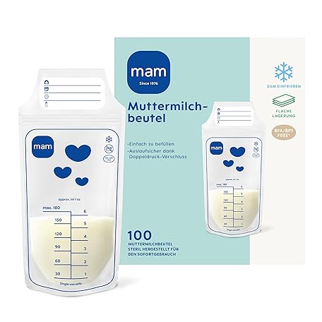 Sản phẩm MAM Breast Milk Bags | Breastfeeding Bag Made of BPA & BPS Free Material | Leak-proof Milk Bags with Double Pressure Closure | Practical Stand | Flat & Space-Saving | 180 ml | Pack of 100 đang được bán với giá ưu đãi là $25.0918 tại nước Đức.