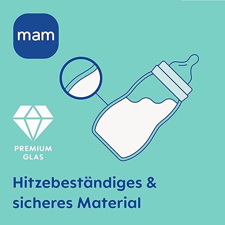 Thông tin sản phẩm MAM Feel Good Glass Baby Bottle (260 ml), Wide Mouth Milk Bottle, Sturdy Baby Drinking Bottle with Size 1 Teat, from Birth, Rabbit/Fox