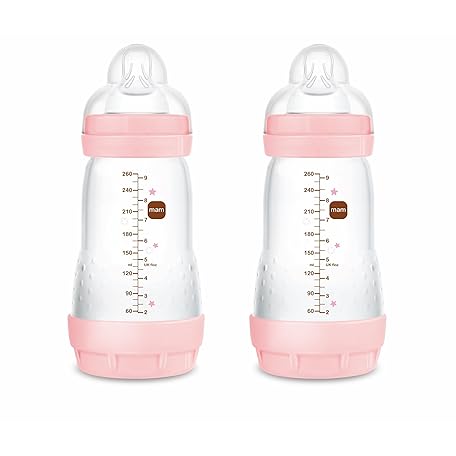 MAM Pack of 2 Anti Colic Bottles 2-4 Months 260ml with Teat 2 Medium Flow Silicone Easy to Absorb Self Sterilising and Easy Clean Easy Start Anti-Colic