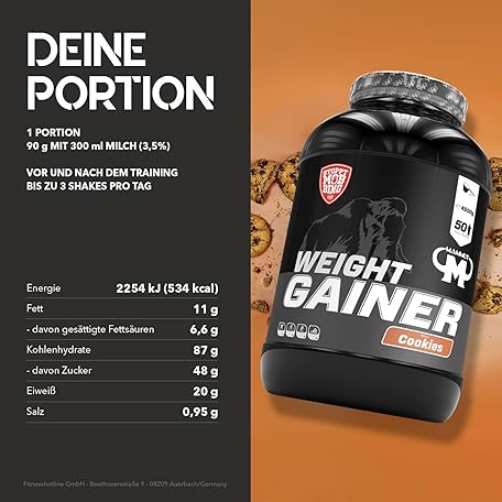 Sản phẩm Mammut Nutrition Crash Weight Gainer Powder Cookies - 4.5 kg - 518 kcal/shake for weight gain - 80% carbohydrates - 4-component protein - Ideal for endurance and performance athletes đang được bán với giá ưu đãi là $50.6305 tại nước Đức.