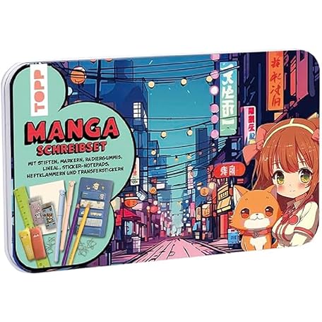 Manga Writing Set: Pens, Marker, Eraser, Ruler, Staples, 2 Transfer Sticker Sheets, Sticky Notes