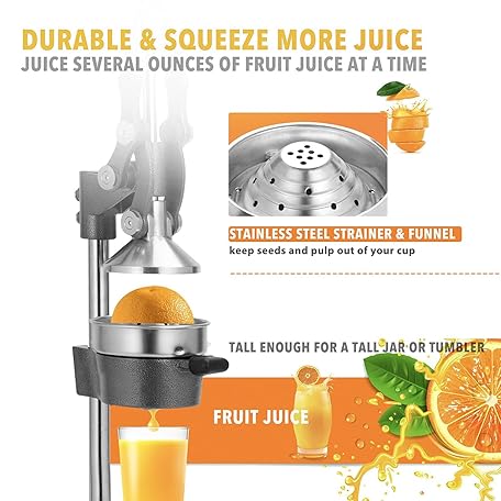 Sản phẩm Manual Juicer, Citrus Juicer, Household Commercial Stainless Steel Juicer, Easy Clean Orange Squeezer, Orange Lime, Grapefruit, Lemon Squeezer, Orange đang được bán với giá ưu đãi là $288.3159 tại nước Đức.