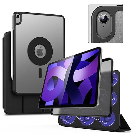 Marasone iPad Air 5 Case 2022 / iPad Air 4 Case 2020 Case Double Layer Magnetic Folio for Inches, Multi-Angle Cover and Pencil Charging Support, Premium PU Leather (Black)
