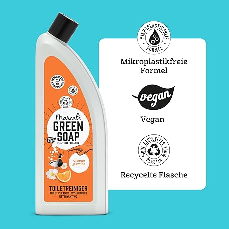 Sản phẩm Marcel's Green Soap - WC-Reiniger Orange & Jasmin - Tötet Bakterien und hinterlässt einen frischen Duft ohne Bleichmittel - 100% umweltfreundlich - 100% vegan - 97% biologisch abbaubar - 750 ML đang được bán với giá ưu đãi là $3.161 tại nước Đức.