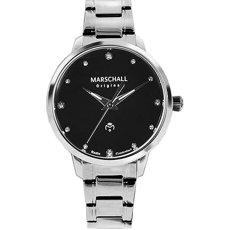 Marschall Original Damen Armbanduhr I Clasica Negra I Klassische Funkuhr mit silbernem Metallarmband I Lumineszierende Zeiger I Modern und leistungsstark