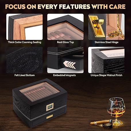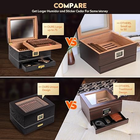 Thông tin sản phẩm Marvero Cigar Humidors, Humidor Cigars, Spanish Cedar Wooden Cigar Box, with Humidor Humidifier, Hygrometer, Divider, Gifts for Cigar Lovers (75 Cigars), Black