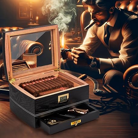 Sản phẩm Marvero Cigar Humidors, Humidor Cigars, Spanish Cedar Wooden Cigar Box, with Humidor Humidifier, Hygrometer, Divider, Gifts for Cigar Lovers (75 Cigars), Black đang được bán với giá ưu đãi là $108.2261 tại nước Đức.