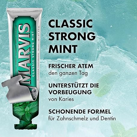 Sản phẩm Marvis Classic Strong Mint Toothpaste, 85 ml, Toothpaste with Taste Experience Guarantee for Invigorating and Long-Lasting Freshness đang được bán với giá ưu đãi là $11.2597 tại nước Đức.