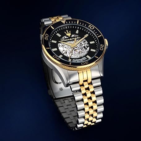 Thông tin sản phẩm Maserati Men's Automatic Analogue Watch with Steel Strap Sfida Collection - R8823140010, Gold, Silver, Black, Bracelet