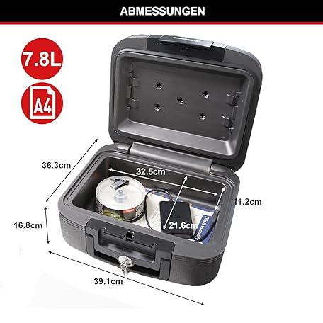 Thông tin sản phẩm Master Lock Tresor Feuerfest und Wasserdicht mit Schlüssel, Dreifacher Schutz - Flug, Feuer und Flut, 7.8L, 16.8 x 39.1 x 36.3 cm