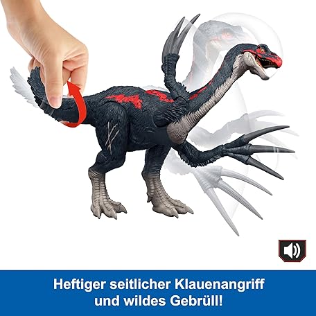 Sản phẩm Mattel Jurassic World Chaos Theory Attack and Roar Sounds Therizinosaurus Dinosaur Action Figure, Claw Attack and Roar Sound, Digital Fun, JCG17, [Multi-Colour] đang được bán với giá ưu đãi là $31.6318 tại nước Đức.
