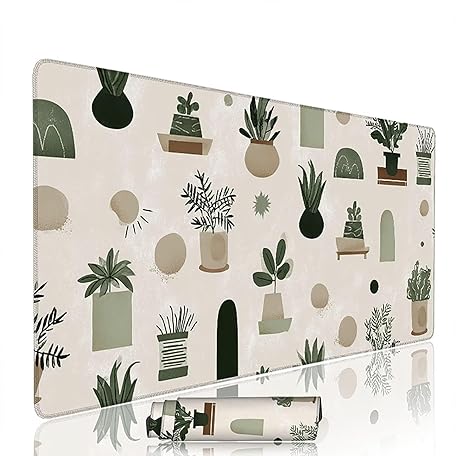 Mauspad xxl 700x300x3mm Schreibtischunterlage Gaming Mauspad Abstrakt Gaming Zubehör Grüne Pflanzen Desk Mat Mauspads Groß mit Genähten Kanten, Nicht Rutschender Unterlage WassXerdicht für PC w-11716