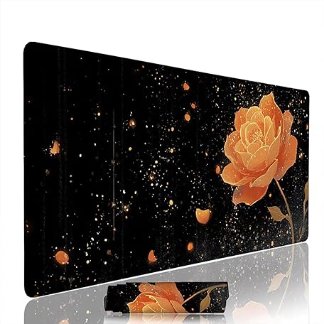 Mauspad xxl 700x300x3mm Schreibtischunterlage Gaming Mauspad Schwarz Gaming Zubehör Blume Desk Mat Mauspads Groß mit Genähten Kanten, Nicht Rutschender Unterlage WassXerdicht, für Office PC w-3868