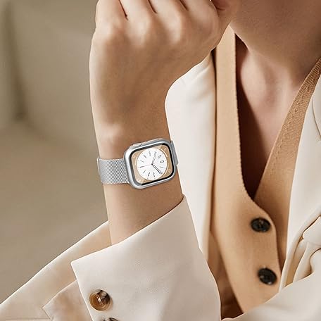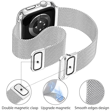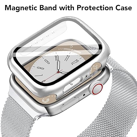 Thông tin sản phẩm Mazuboho Magnetic Band Compatible with Apple Watch Band 40mm 41mm 44mm 45mm with Screen Protector Case, Stainless Steel Mesh, Adjustable and Comfortable Band for iWatch Bands Series 9/8/7/6/5/4/SE