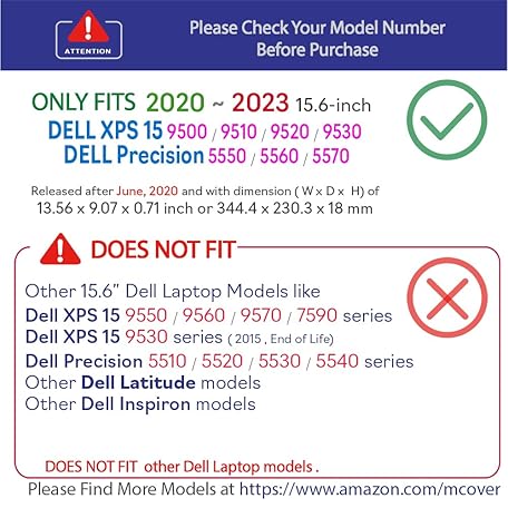 Thông tin sản phẩm mCover-Hülle, NUR kompatibel mit 15,6-Zoll-Laptop-Computern der Dell XPS 15 9500 9510 9520 / Precision 5550 5560 5570-Serie (Nicht für andere Dell-Modelle geeignet) – schwarz