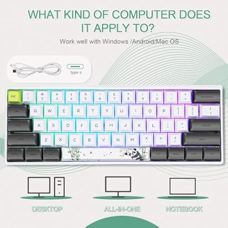 Sản phẩm Mechanical Gaming Keyboard 60% with Red Switches 61 Keys Mechanical Keyboard RGB Backlit, Compact Mini USB Wired Keyboard for WIN/Mac/PC (Panda Theme) đang được bán với giá ưu đãi là $24.7648 tại nước Đức.
