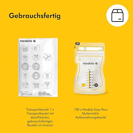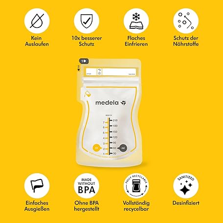 Sản phẩm Medela Easy Pour Disposable Breast Milk Bags 210ml - Leak-proof Design with Milk Protection - BPA Free Storage Bags - Pack of 100 đang được bán với giá ưu đãi là $33.136 tại nước Đức.