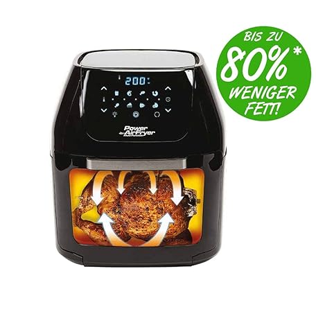 Sản phẩm Mediashop Power Airfryer Multi-Function Hot Air Fryer Deep Fryer Rotisserie and Automatic Dehydrator Recipe Book Rotating Basket Grill Skewer 1,800 Watts Grease-free Grilling without Oil The original from the TV đang được bán với giá ưu đãi là $201.7154 tại nước Đức.