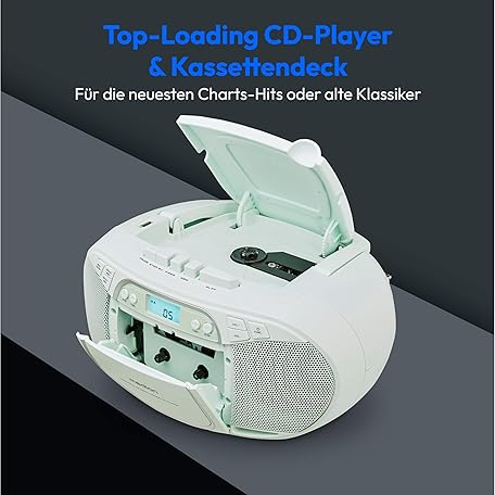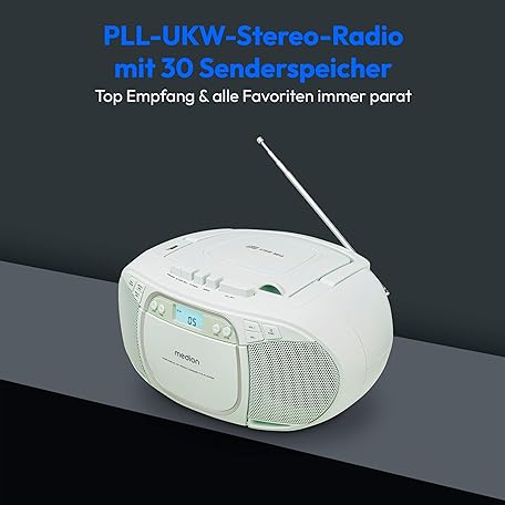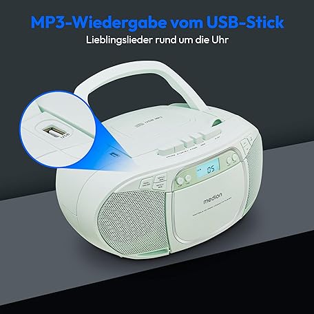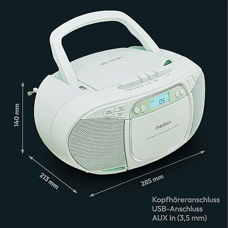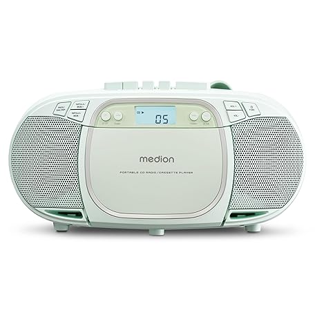 Thông tin sản phẩm MEDION E66476 Stereo Sound System (Boombox, CD Player, MP3, Cassette, Portable Cassette Player for Children, FM Radio, AUX, Headphones, Mains & Battery) Green