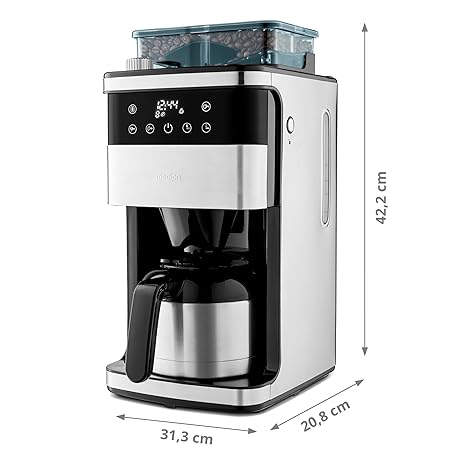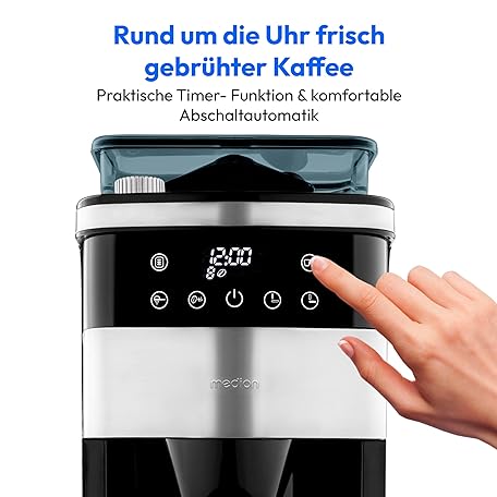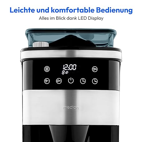 Thông tin sản phẩm MEDION MD19911 Coffee Machine with Grinder and Thermos Flask (1 Litre, Max. 8 Cups, 8 Grinding Levels, Max. 1000 Watt, Timer, LED Display, Drip Stop, Permanent Filter, MD19911)