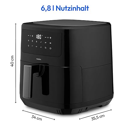 Thông tin sản phẩm MEDION P10 XL Duo MD11750 Hot Air Fryer (6.8 Litre XXL, Airfryer, 2,150 Watt, Two Stainless Steel Heating Elements, Shake Alarm, 9 Automatic Programmes, Touch Control Panel, LED Display)