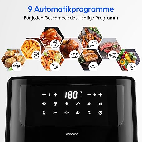 Thương hiệu MEDION là cái tên nổi tiếng được rất nhiều khách hàng trên thế giới chọn lựa. Với kiểu dáng đẹp mắt, sang trọng, sản phẩm MEDION P10 XL Duo MD11750 Hot Air Fryer (6.8 Litre XXL, Airfryer, 2,150 Watt, Two Stainless Steel Heating Elements, Shake Alarm, 9 Automatic Programmes, Touch Control Panel, LED Display) là sự lựa chọn hoàn hảo nếu bạn đang tìm mua một món cho riêng mình.