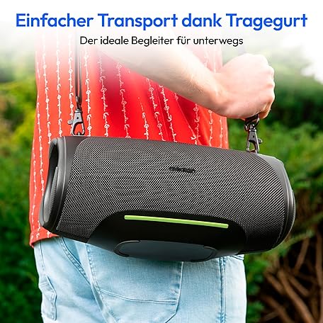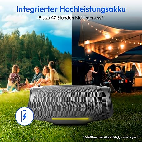 Sản phẩm MEDION P61762 Portable Bluetooth Speaker (Battery, Bass Boost, Music Box, RGB Light Effects, IPX7 Water Protection & Robust, Integrated Power Bank, 2 x 25 W RMS) Anthracite đang được bán với giá ưu đãi là $101.6752 tại nước Đức.