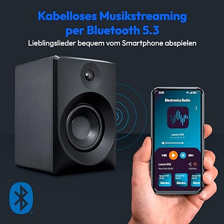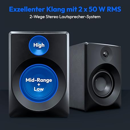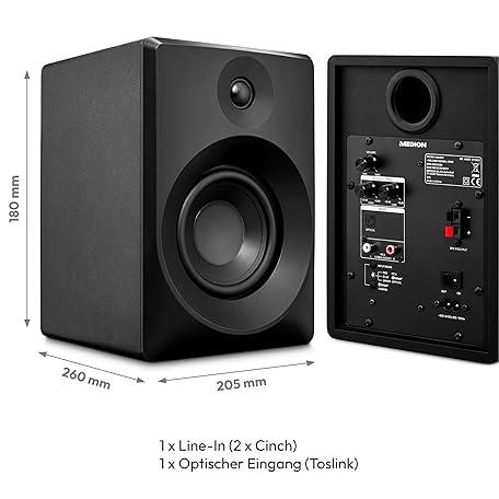 Thông tin sản phẩm MEDION P61925 Bookshelf Speaker (Active and Passive, Wooden Housing, 2-Way System, Bluetooth 5.0, Integrated Tweeter and Subwoofer, Rotary Control, Optical Input SPDIF, Line In RCA, 2 x 50 Watt RMS)