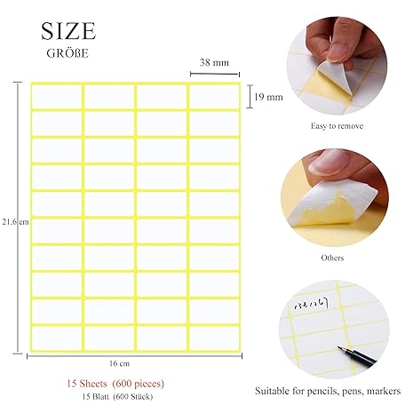 Thông tin sản phẩm Meekye 600 Stück Etiketten Selbstklebend, 38 x 19 mm Aufkleber zum Beschriften, Universal Klebeetiketten zum Preisschilder, Adress, Haushalt, Tiefkühl Büro Küche und Marmelade Etiketten