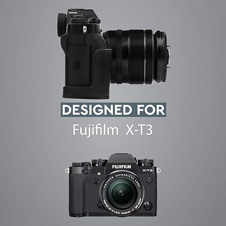 MegaGear Ever Ready Case, Half Case, Base Case, Genuine Leather Protective Case with Strap Compatible with Fujifilm X-T3