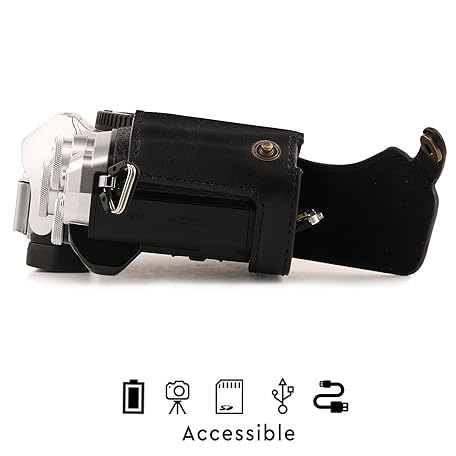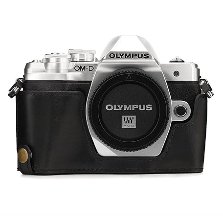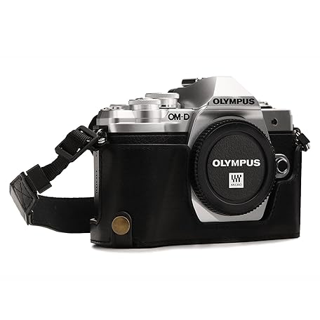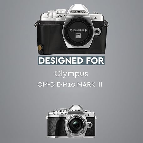 MegaGear Ever Ready Leather Camera Half Case with Strap Compatible with Olympus OM-D E-M10 Mark III
