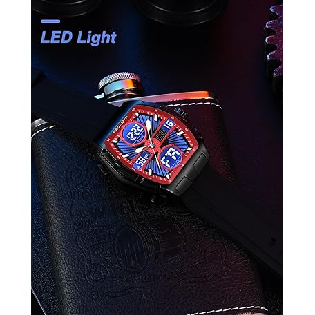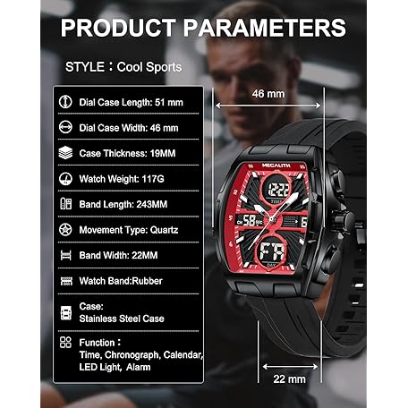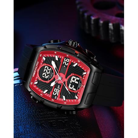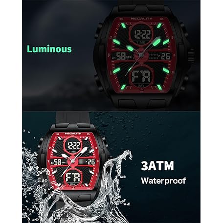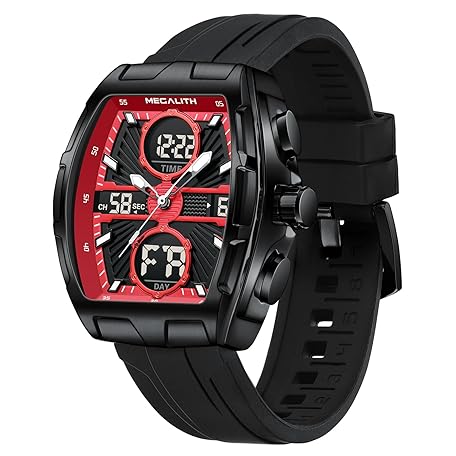 Thông tin sản phẩm MEGALITH Men's Watch Analogue Digital Stopwatch Sport Military Waterproof LED Date Alarm Clock Large Watches for Men, red, Bracelet