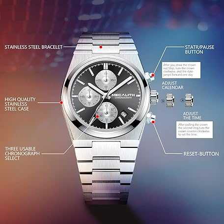 Thương hiệu MEGALITH là cái tên nổi tiếng được rất nhiều khách hàng trên thế giới chọn lựa. Với kiểu dáng đẹp mắt, sang trọng, sản phẩm MEGALITH Men's Watches Stainless Steel Chronograph: 100M Waterproof Analogue Watch Men's Dial Calendar Business Sport Design là sự lựa chọn hoàn hảo nếu bạn đang tìm mua một món cho riêng mình.