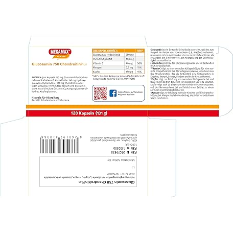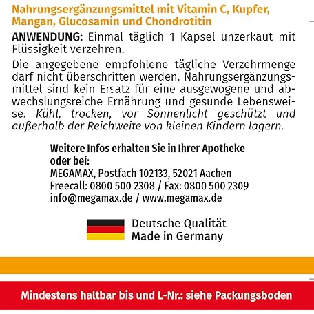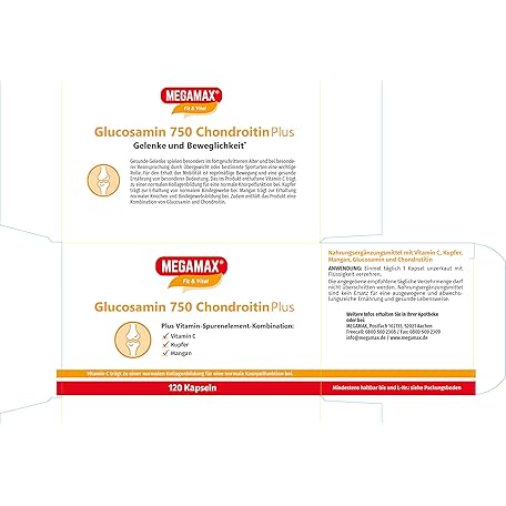 Sản phẩm MEGAMAX Glucosamine 750mg & Chondroitin & Vitamin C & Manganese & Copper Contents: 120 capsules đang được bán với giá ưu đãi là $39.1419 tại nước Đức.