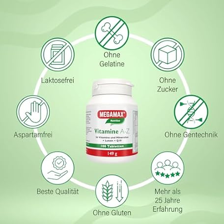 Thông tin sản phẩm MEGAMAX High Dose Vitamins and Minerals | Valuable Vitamins A-Z, Vitamins A, B, C, D, E, Biotin, Zinc, Selenium | Supplement for GLP-1 Friendly Diet - Energy, Immune System & Cell Protection