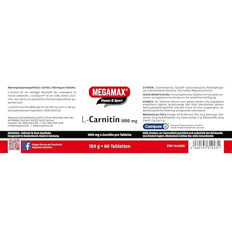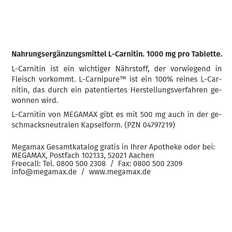 Sản phẩm Megamax L Carnitine 1000 mg Tablets Pack of 60 đang được bán với giá ưu đãi là $55.2739 tại nước Đức.