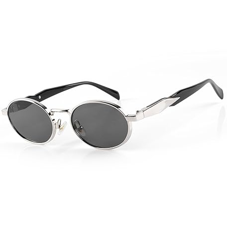 MEGAVOW Retro Sunglasses Women Men Oval Sunglasses Women Fashion Metal Frame Steampunk Glasses UV400 Protection Small Sunglasses