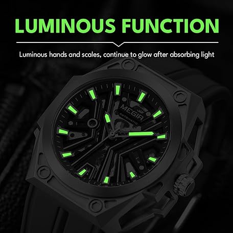 Sản phẩm MEGIR Mens Automatic Watch 316L Steel Case Luminous Dial 5ATM Waterproof Silicone Band đang được bán với giá ưu đãi là $86.5569 tại nước Đức.