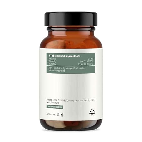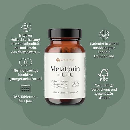 Sản phẩm Melatonin 0.5 mg + Vitamin B6 & B12 - 365 Tablets (Year Pack) - Laboratory Tested - Manufactured to Tested Production Standards đang được bán với giá ưu đãi là $25.4188 tại nước Đức.