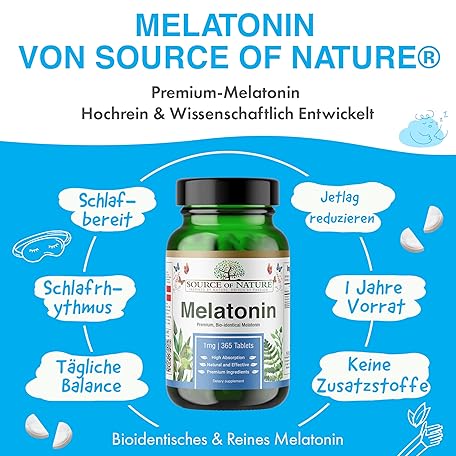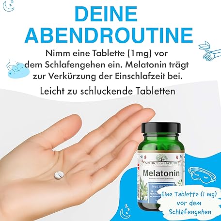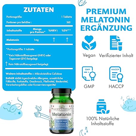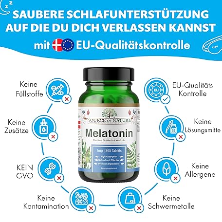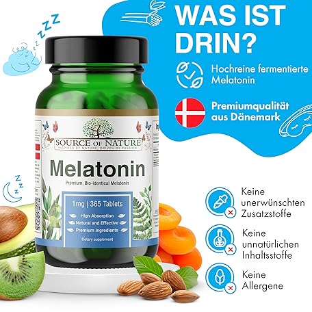 Sản phẩm Melatonin 1 mg | 365 Tablets | High Dose | 1 Year Supply | No Additives | Vegan | Laboratory Tested | Made in Denmark | Source of Nature đang được bán với giá ưu đãi là $12.0445 tại nước Đức.